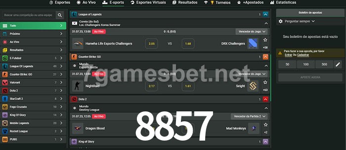 A aposta 8857 oferece aos jogadores a experiência mais conveniente de apostas em eSports!